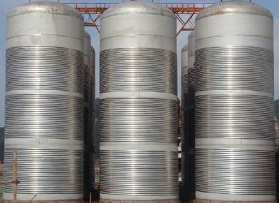 我廠設計的發(fā)酵罐為標準式罐型,這種罐型當公稱容積在6M3以下時罐采用夾套式。發(fā)酵氣的冷卻或加熱,均由夾套來完成。公稱容積為6M3以上時,發(fā)酵氣的冷卻由立式排管來擔負,在罐內排管的連接方面我們作了改進。這主要避免在罐體上多開孔,開成死角。這種連續(xù)方式在實際使用中得到滿意的效果。